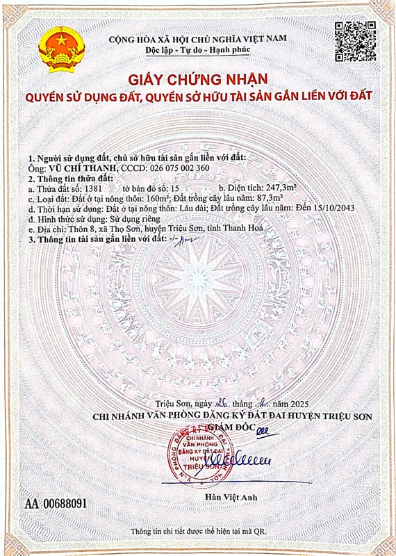 AA 00688091 – 247,3m2 – Triệu Sơn, Thanh Hóa