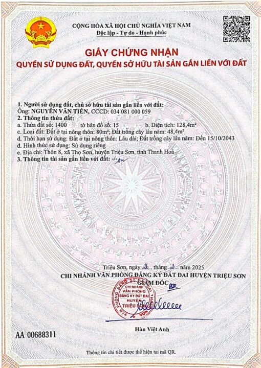 AA 00688311 – 128,4m2 – Triệu Sơn, Thanh Hóa