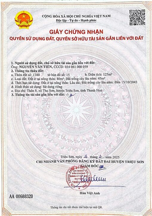 AA 00688320 – 125m2 – Triệu Sơn, Thanh Hóa
