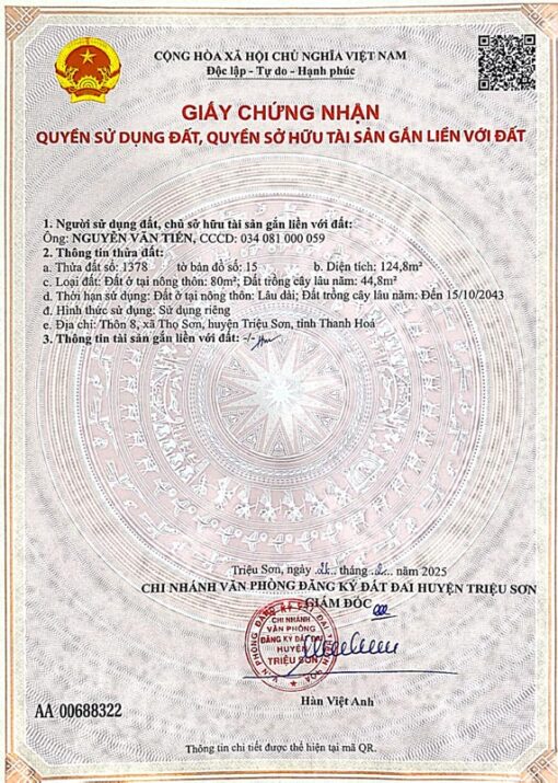 AA 00688322 – 124,8m2 – Triệu Sơn, Thanh Hóa